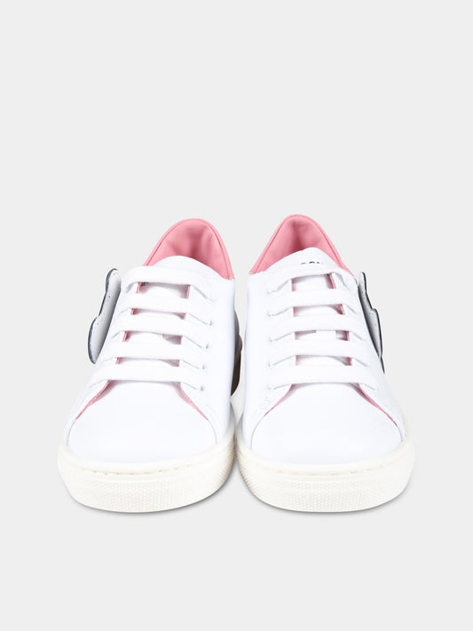 White sneakers for girl with Teddy Bear and logo